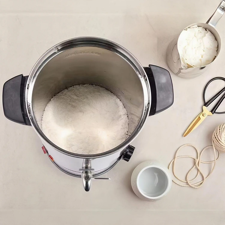 We offer sawetara lengkap saka specifications kapasitas, kalebu 5L, 8L, 10L, 12L, 15L, 25L, 35L, 45L lan opsi liyane, panutup cilik, medium lan gedhe-ukuran lilin leleh kabutuhan. Model kapasitas cilik (5L-15L) cocok kanggo studio DIY batch cilik lan produsen lilin skala cilik, ngenggoni papan sing kurang lan gampang dipindhah; model kapasitas gedhe (25L-45L) dirancang kanggo produksi skala industri, bisa nyawiji jumlah gedhe saka lilin ing siji wektu, nambah efficiency produksi.